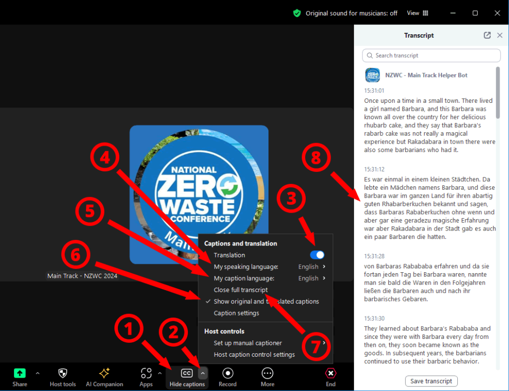 Ahora tenemos traducción completa de transcripciones en vivo de cualquier idioma a cualquier idioma a través de la herramienta de subtítulos de Zoom. Las reuniones serán principalmente en inglés. Sin embargo, ahora podrá configurar su transcripción en el idioma de su elección. Esta es una característica relativamente nueva en Zoom, por lo que agradecemos su paciencia mientras probamos esta capacidad.