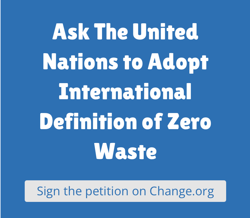 “Zero Waste is a goal that is ethical, economical, efficient and visionary, to guide people in changing their lifestyles and practices to emulate sustainable natural cycles, where all discarded materials are designed to become resources for others to use.